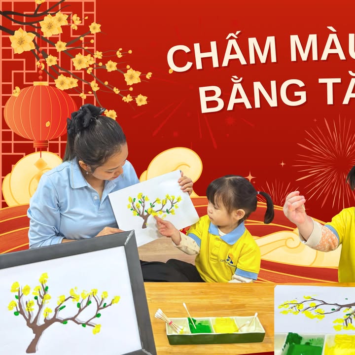 Không khí mùa xuân đã ngập tràn lớp học của Little Sol Montessori. Các bé đã thử thách sự khéo léo với tăm bông để tạo hình hoa mai vàng rực rỡ.