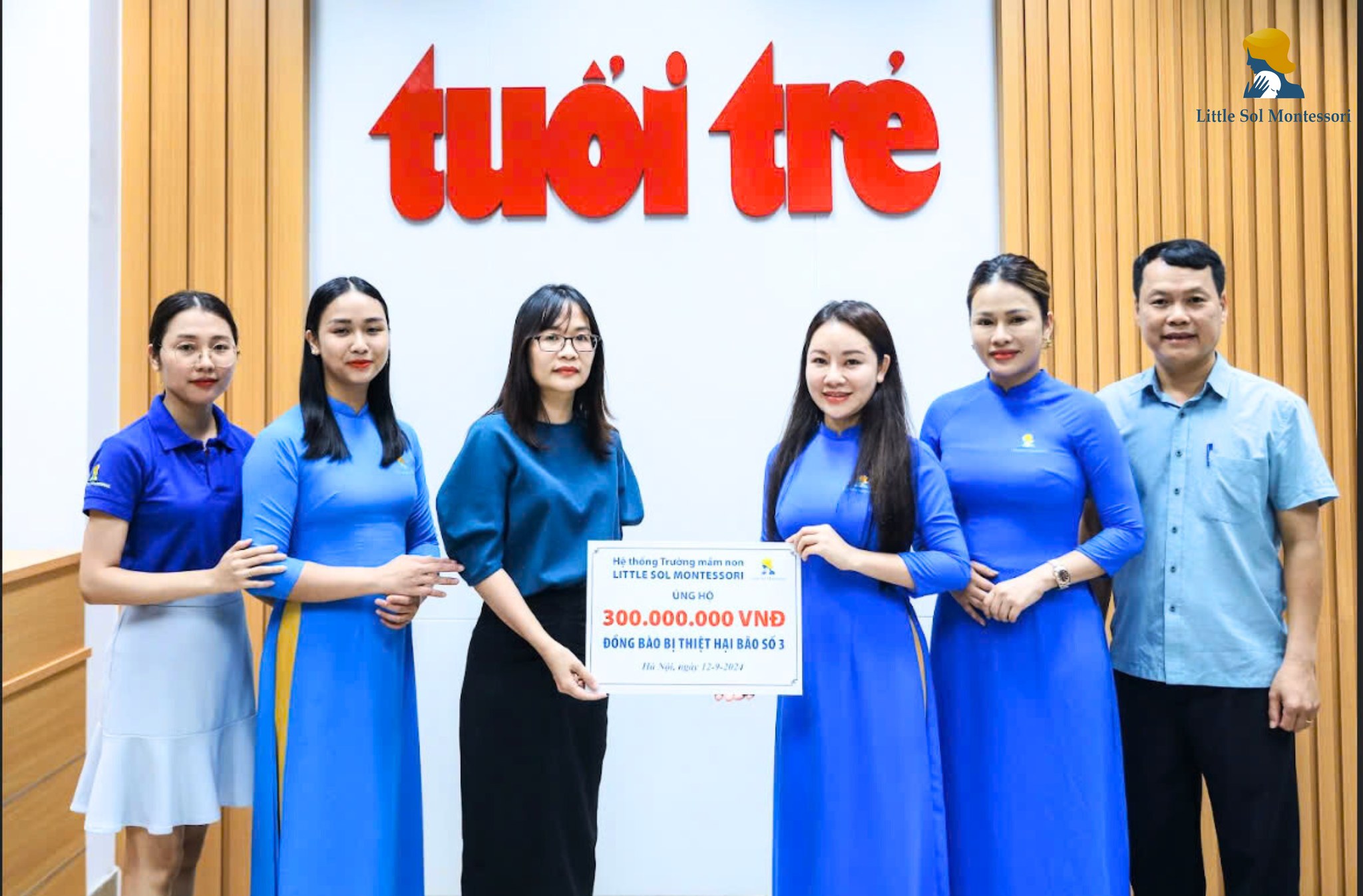 Hệ thống mầm non song ngữ Little Sol Montessori đã trích 300 triệu đồng từ kinh phí kỷ niệm 10 năm thành lập để ủng hộ đồng bào bị ảnh hưởng bởi bão lũ thông qua quỹ từ thiện của báo Tuổi Trẻ.